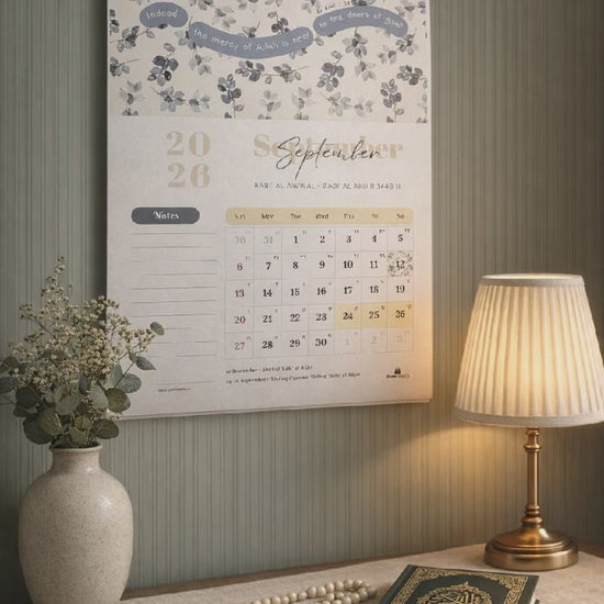 The Aesthetic Islamic Calendar is thoughtfully created for homes that value beauty, faith, and intentional living. A calendar that blends seamlessly into your living room, workspace, or bedroom — while gently reminding your heart of Allah ﷻ every single day.